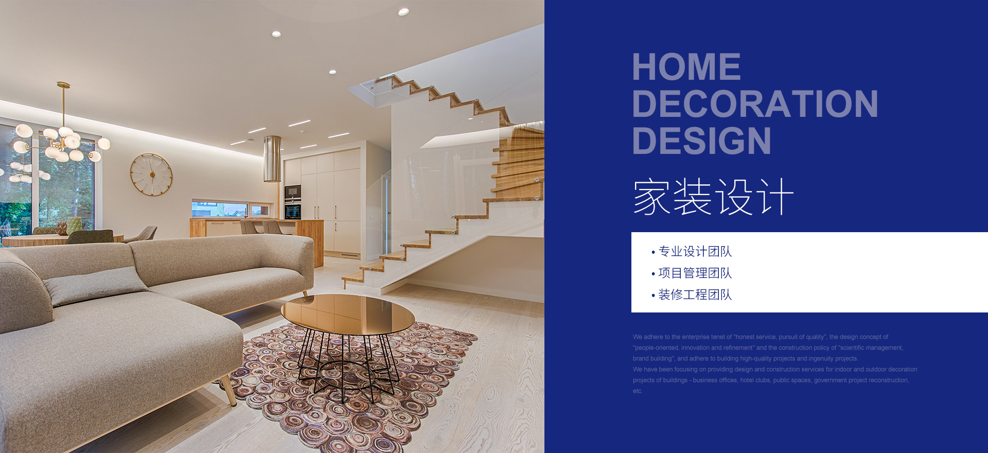 我們本著“誠信服務,追求品質”的企業宗旨,“以人為本,創新求精”的設計理念和“科學管理、樹立品牌"的施工方針,堅持打造精品工程,匠心工程。